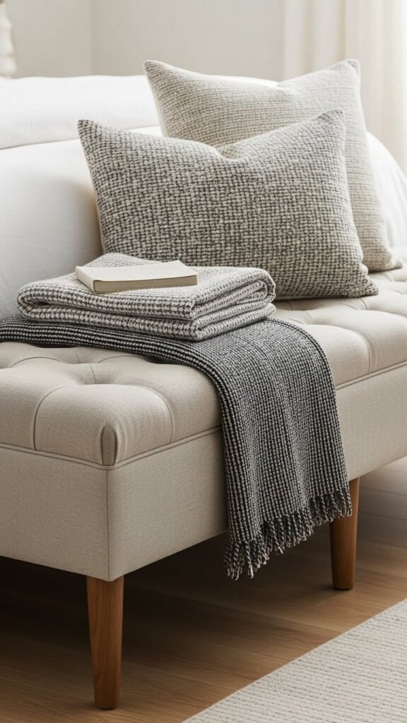 Throws add warmth and visual interest. Drape one across the foot of your bed or over a chair. Chunky knits, faux fur, or waffle weaves work year-round. Don’t fold it perfectly—a casual drape looks inviting. Target’s Threshold line offers quality throws for $25. Choose colors that complement your bedding. Throws also provide an extra layer for cold nights without adding a heavy comforter. This simple addition photographs beautifully and actually gets used.