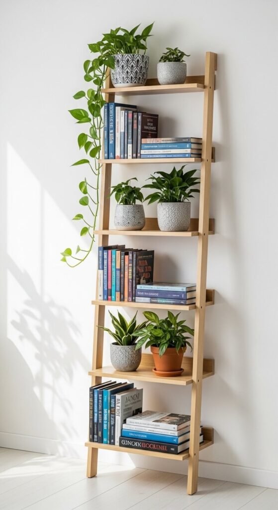 Skip built-ins—use freestanding shelves instead. Bookcases, ladder shelves, and cube organizers lean or stand independently. Move them between rooms or apartments easily. Quality units cost $50-$300.