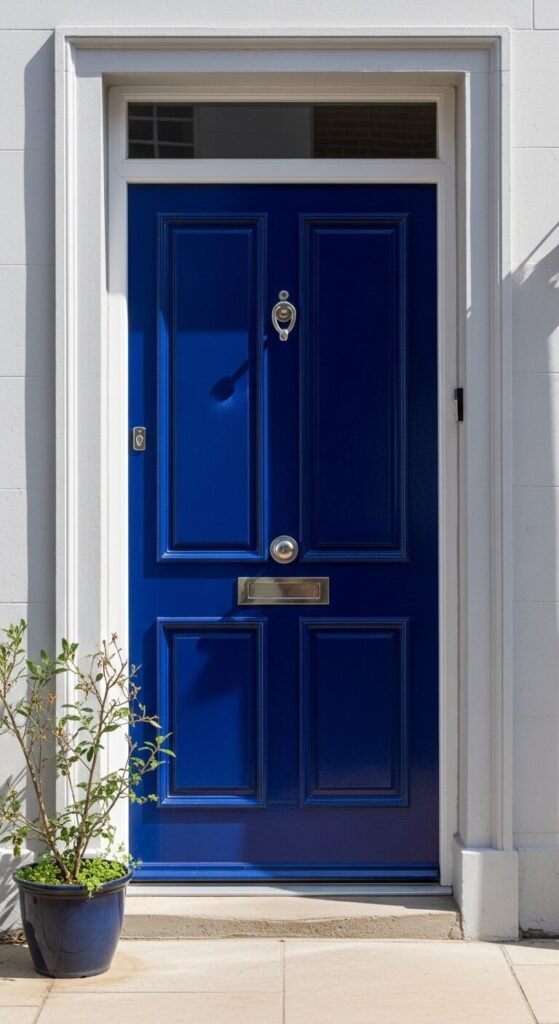 A boldly painted front door in cobalt blue, pillar-box red, deep forest green, or ochre yellow is the most impactful single exterior color decision available. It sets the tone for the entire home before anyone enters. Use exterior gloss paint for durability and at least two topcoats for full depth of color. A front door typically uses less than a litre of paint — even premium exterior paint is affordable at this quantity. The psychological impact of a bold front door color on daily mood is well documented — it creates a moment of visual pleasure every time you arrive home.