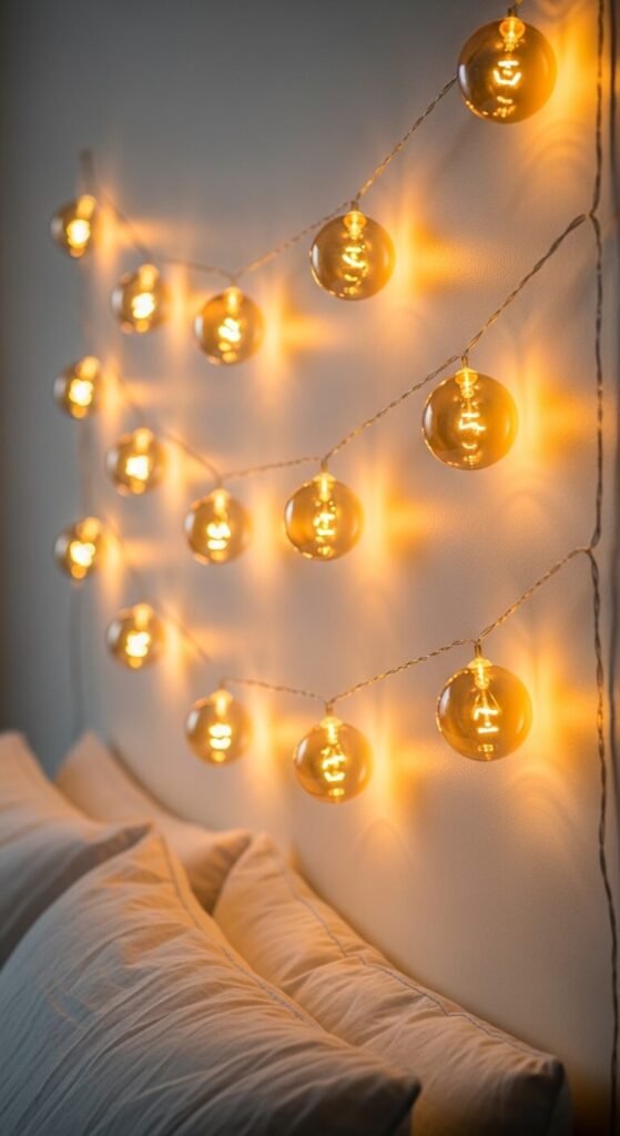 20. String Lights Behind a Headboard
