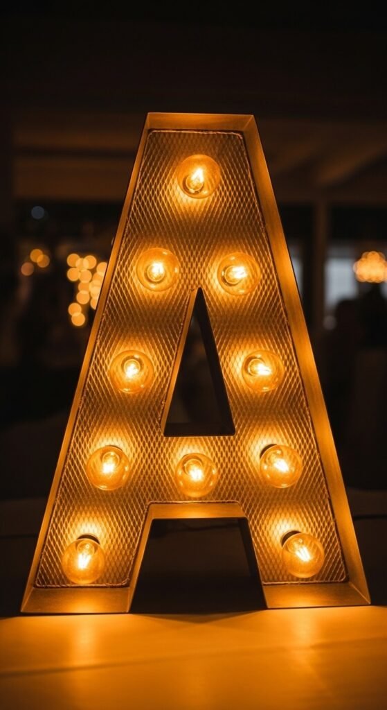 Marquee letter lights — metal wire-frame letters with Edison-style bulbs fitted around the perimeter — are among the most immediately recognizable decorative light objects in the event and home decor category and create a warm, personal statement on a shelf, mantel, or party table. Individual marquee letters cost $10 to $30 each from most party supply stores, Amazon, and home decor retailers. Spell out initials, a word, or a single meaningful letter. Use them on a bookcase shelf, bedroom dresser, or dining table centerpiece. The bulbs in most marquee letters are replaceable — a small screwdriver and a replacement globe bulb extends the life of the fixture indefinitely. Pair with a dimmer plug for atmosphere control.