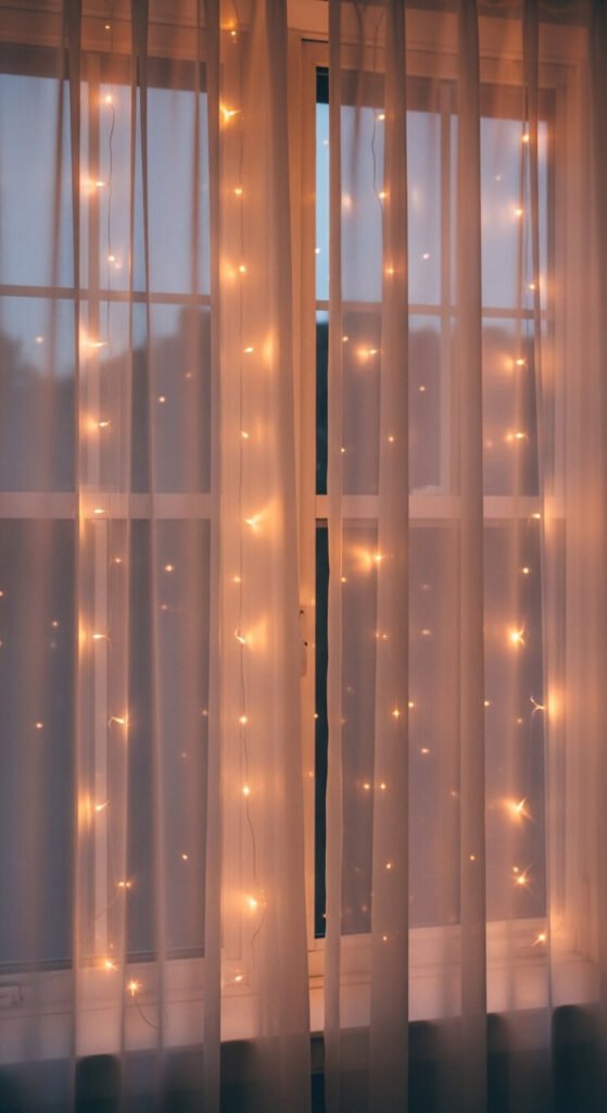 5. Curtain String Lights Behind Sheer Panels