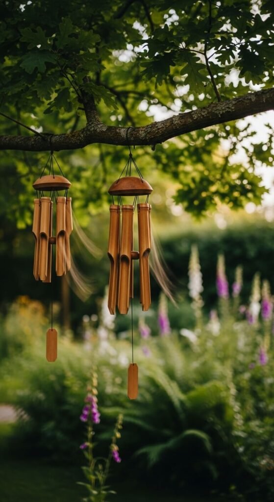 Wind chimes add sound to a garden — and sound is one of the most underused sensory elements in outdoor design. Hang them where they will catch a gentle breeze, ideally near a seating area so you can hear them clearly. Bamboo chimes have a soft, mellow tone that suits naturalistic gardens. Metal chimes carry further and suit more open spaces. Avoid anything too loud or high-pitched near a seating area — the sound should feel calming, not intrusive. Basic bamboo chimes cost around $8 to $15 and last two to three years outdoors before the cord needs replacing.