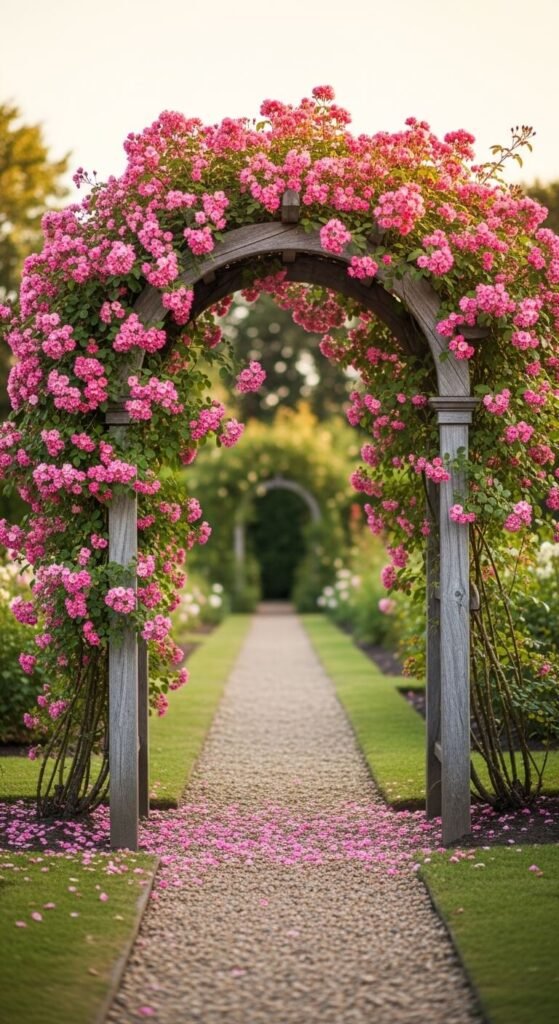 2. Climbing Roses on Wooden Arches