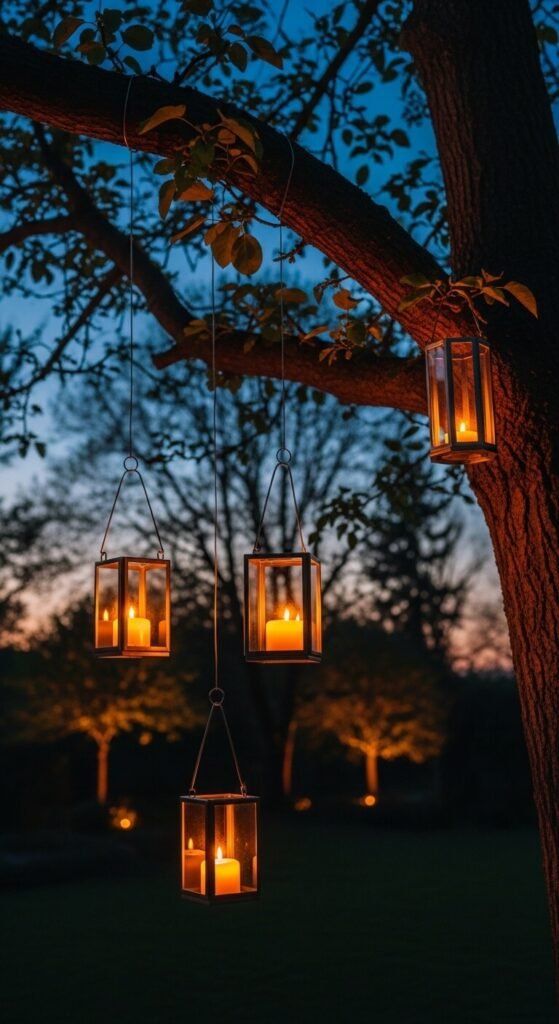 22. Hanging Lanterns in Garden Trees