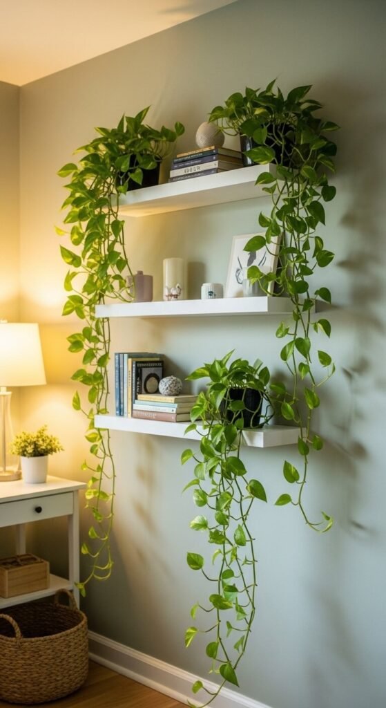 2. Trailing Pothos Shelf Cascade