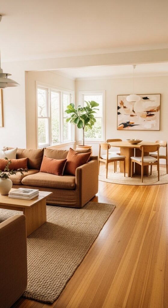 - Use the same wood tone for furniture across multiple rooms
