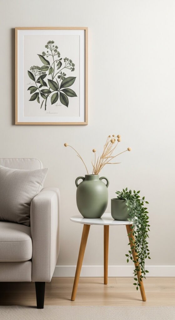 - Low — a rug, a plant pot on the floor, a small side table; these ground the accent color and prevent the room from feeling top-heavy