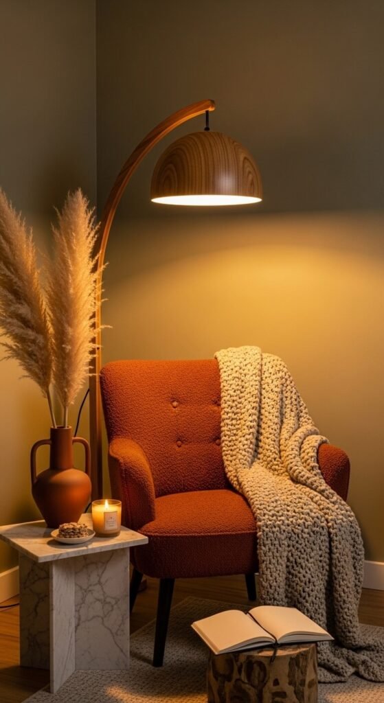 - A combination — the best cozy corners often layer two or three light sources at different heights for a rich, dimensional warmth