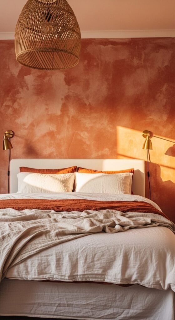 - Limewash or textured paint — these specialty finishes add a mottled, aged quality that looks far more expensive and hand-crafted than standard flat paint