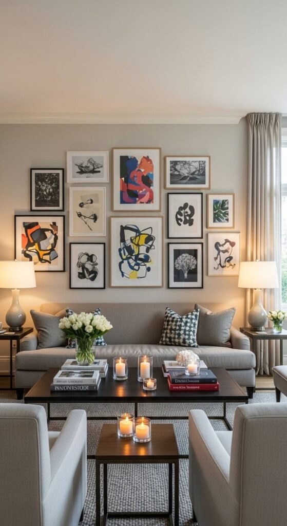 Asymmetrical Balance This is where the real designer magic happens. Instead of matching objects, you balance visual weight — using different items that carry the same sense of presence. A tall floor lamp on one side balanced by a cluster of smaller objects on the other, for example. It feels dynamic, collected, and effortlessly stylish.