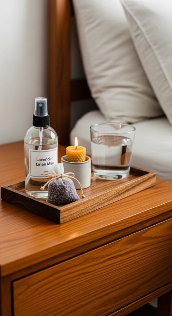 - A lavender linen spray applied to pillowcases 30 minutes before bed