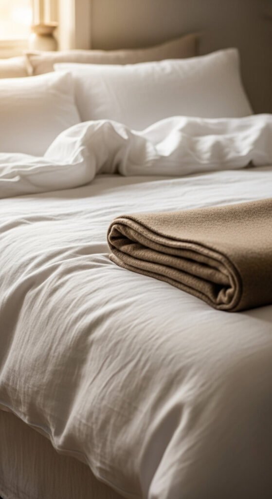 - A medium-weight cotton or wool blanket as a secondary layer that can be added or removed during the night without fully waking