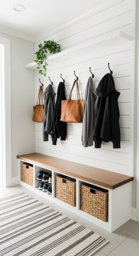 Whether you’re working with a dedicated mudroom, a side-entry hallway, or just a corner near the back door that desperately needs structure, this guide covers every element you need for a space that contains the chaos and looks great doing it.
