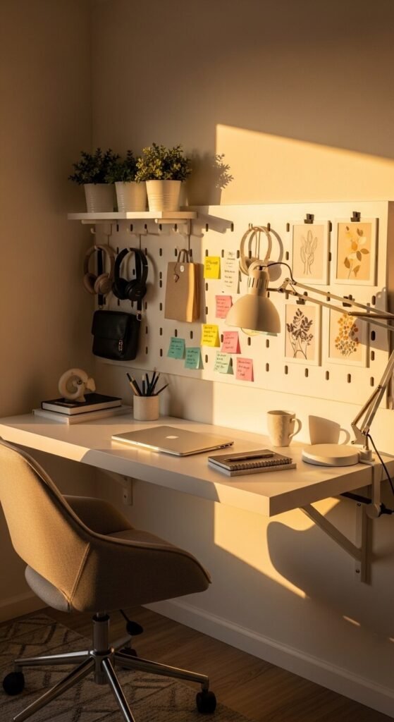 - A pegboard or corkboard above the desk keeps their space organized and expressive