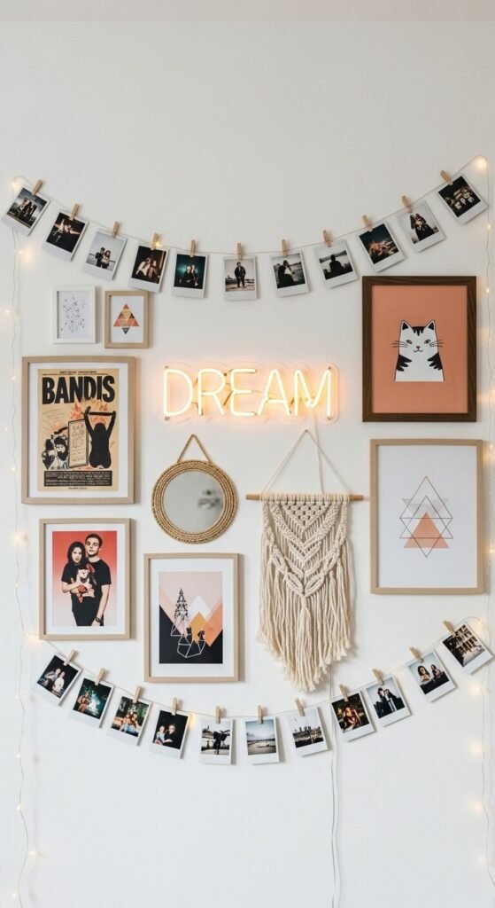 - String lights or neon signs for warm, ambient lighting that doubles as decor
