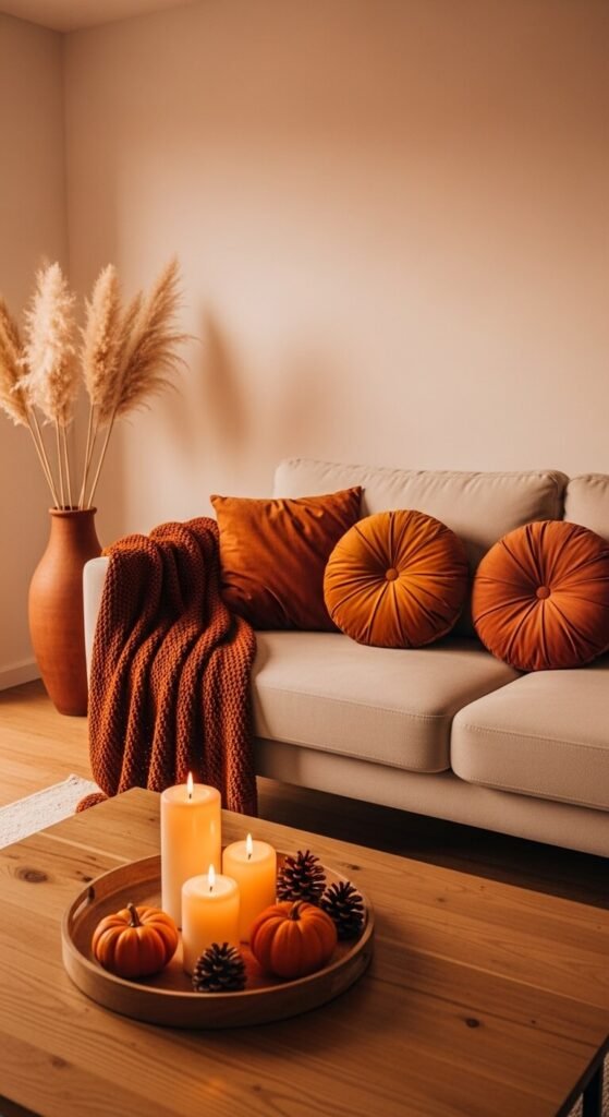 There is a specific feeling that the best autumn homes produce — the feeling that the room itself has put on a heavier sweater. The colors are warmer. The textures are deeper. The light feels more deliberate because there is less of it. And somewhere in the room, a candle is burning in a scent that makes the whole house feel like it is settling in for something slow and good. Decorating for fall is not about buying a collection of ceramic pumpkins or draping fake leaves across every horizontal surface. It is about shifting the room’s material palette toward warmth, heaviness, and the specific golden-amber tones that every human nervous system is apparently pre-wired to find comforting as the days shorten. The good news is that most of this shift costs almost nothing — because the best fall decor is swap-based, not purchase-based.