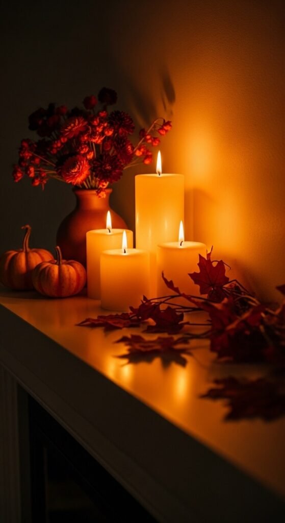 No single element transforms a room’s autumn atmosphere as immediately as candles — and autumn is the season where multiple candles in the same room, all lit simultaneously, create the most spectacular effect.