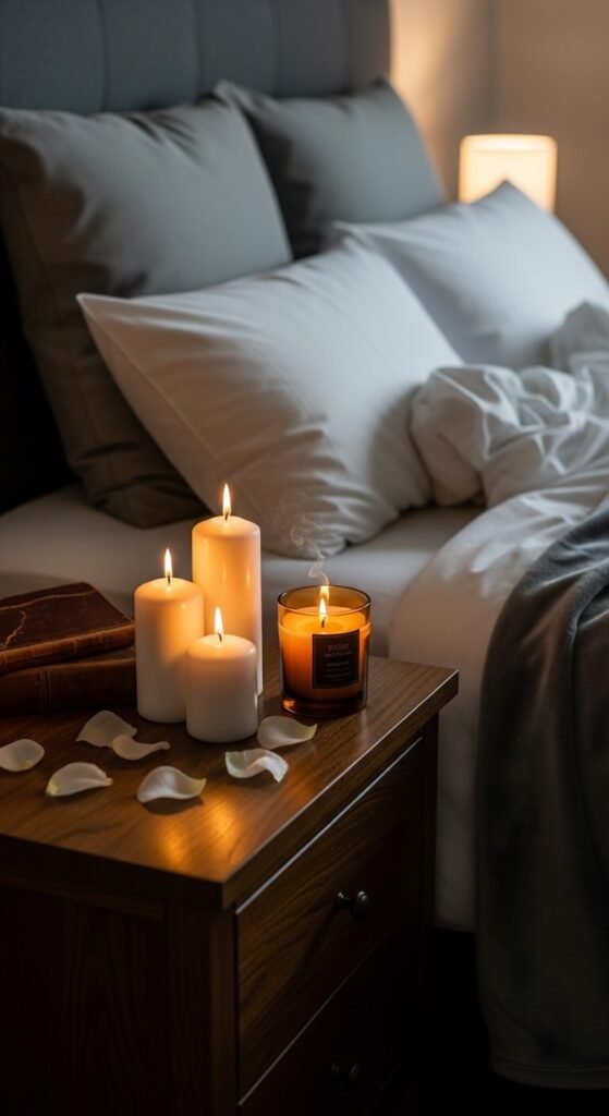 Don’t just put candles anywhere—place them in specific zones where you’ll spend romantic time and where they’ll have maximum visual impact.