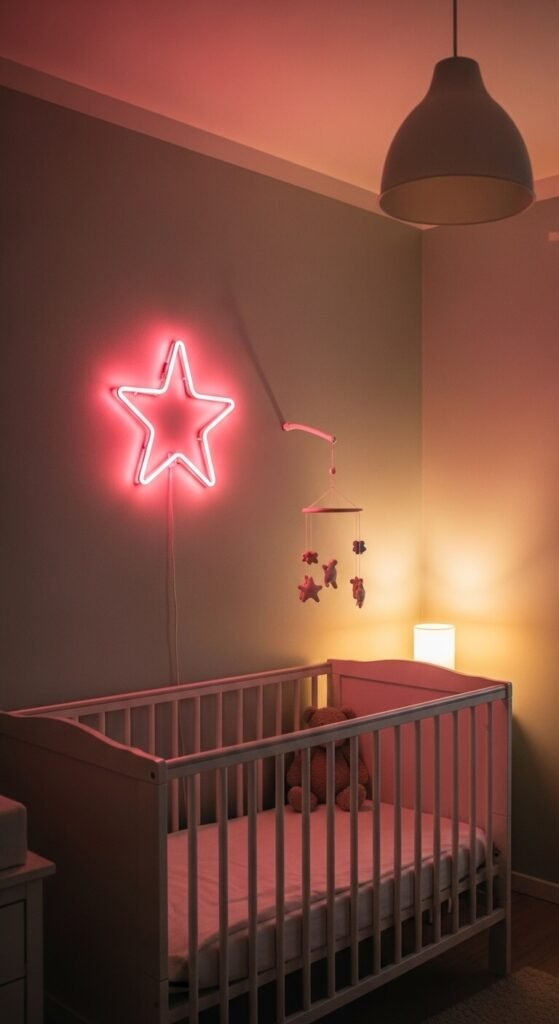 Whether you’re decorating a bedroom, a home office, a bar cart corner, or a nursery, here’s how to bring neon in beautifully — so it feels like a design decision and not an afterthought.