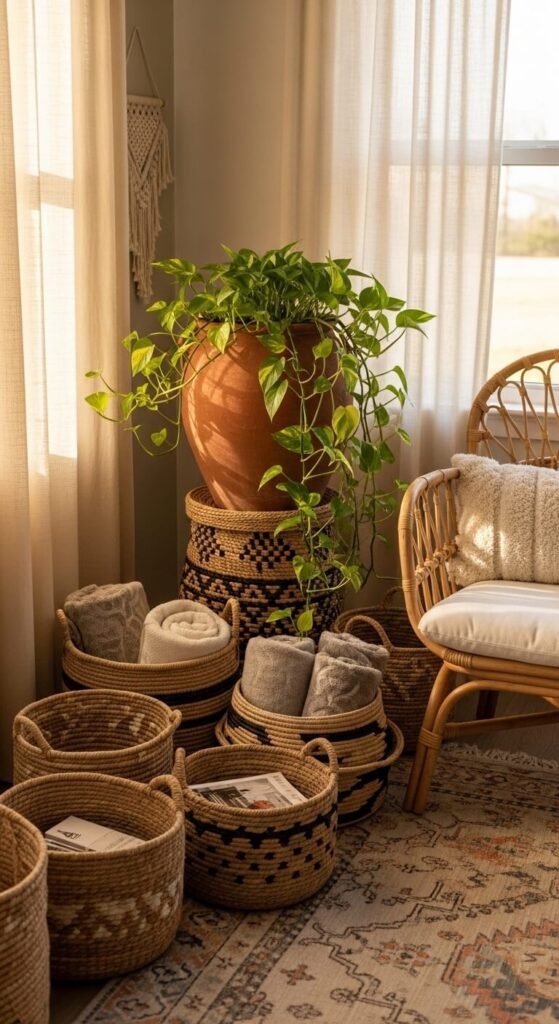 - Rattan and wicker — adds lightness and an artisanal feel