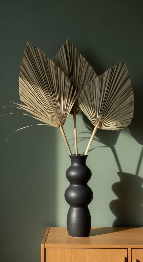 - Entryway console table — the first thing anyone sees when they walk in. A tall vase with dramatic dried stems makes an immediate impression.