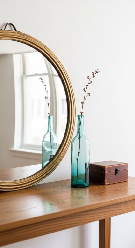 The difference between curated and cluttered is almost always just quantity. Most surfaces can support one or two vintage pieces displayed intentionally. The same surface with five vintage pieces begins to look like a charity shop display.