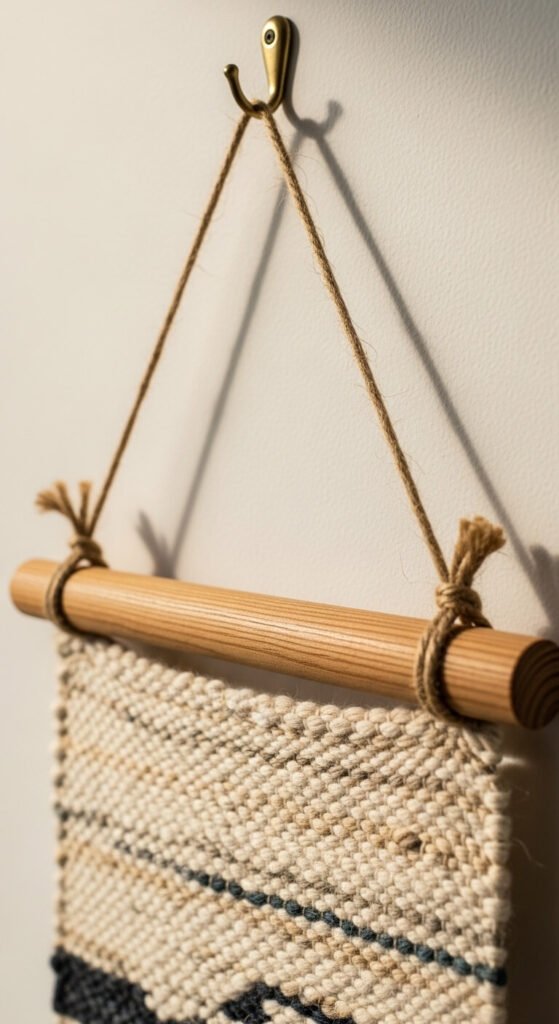 - For a more structured look, pin through a thin strip of balsa wood or a flat ruler running across the back of the tapestry’s top edge; this keeps everything perfectly straight