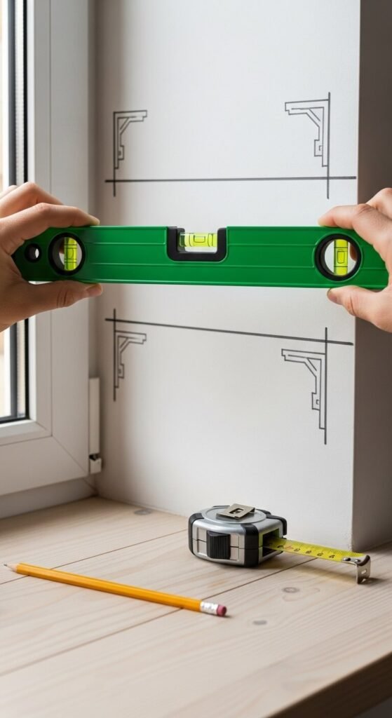 - Use a level across both bracket marks before drilling — an unlevel rod is immediately visible once curtains are hung