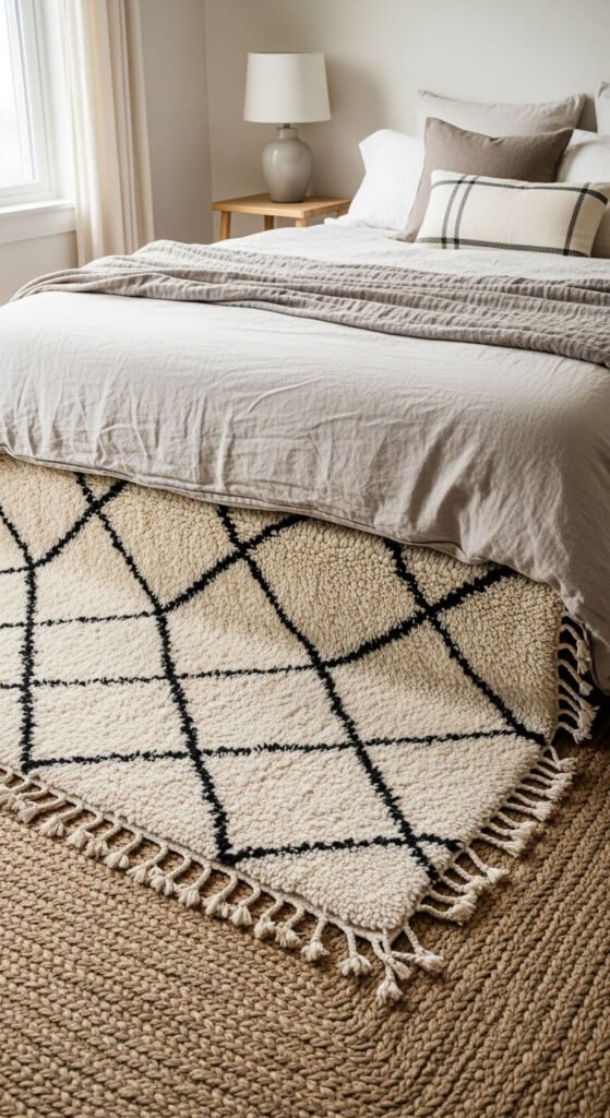 - Use the 60-30-10 rule: base rug is 60% neutral, top rug adds the 30% secondary color