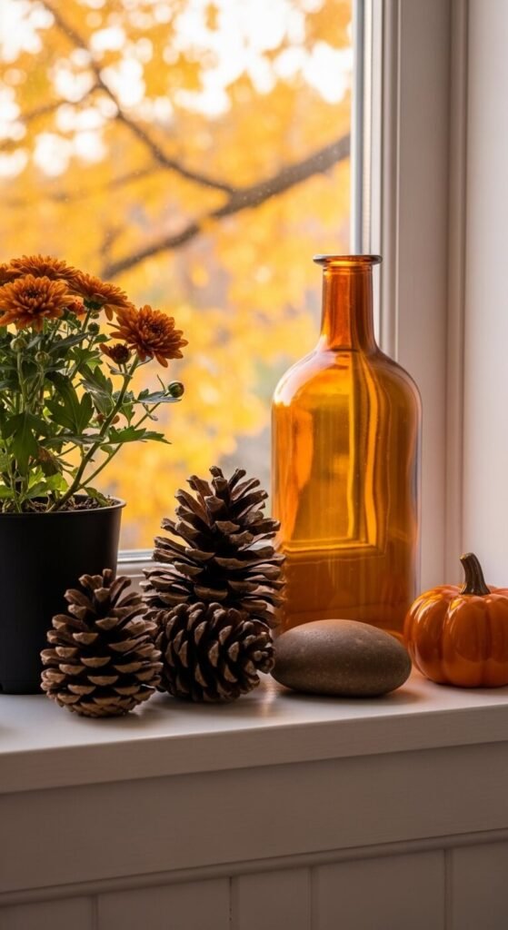 Swapping out one or two pieces with the seasons keeps the windowsill feeling alive and connected to the world just outside the glass.